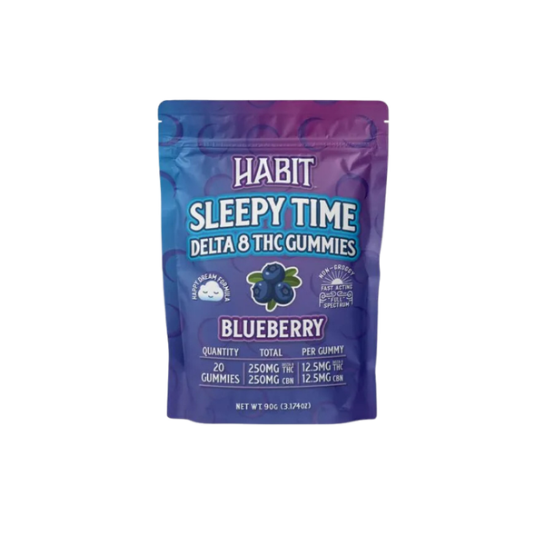 Habit’s Sleepy Time Gummies contain 12.5mg of Delta 8 and 12.5mg of CBN per gummy. These gummies are vegan and made in small batches with love in Southern California. These gummies are made with organic hemp from the USA Enjoy!