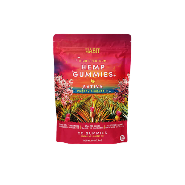 Habit High Spectrum Hemp Gummies are manufactured with USA-grown hemp and contain less than 0.3% THC per piece. These gummies were manufactured for maximum THC content while staying well within the federally legal limits. Exercise extreme caution, as these gummies are just as potent as what you can buy in a dispensary. We recommend that new users start with 1/4 of a gummy (2.5mg) and adjust the dosage from there.