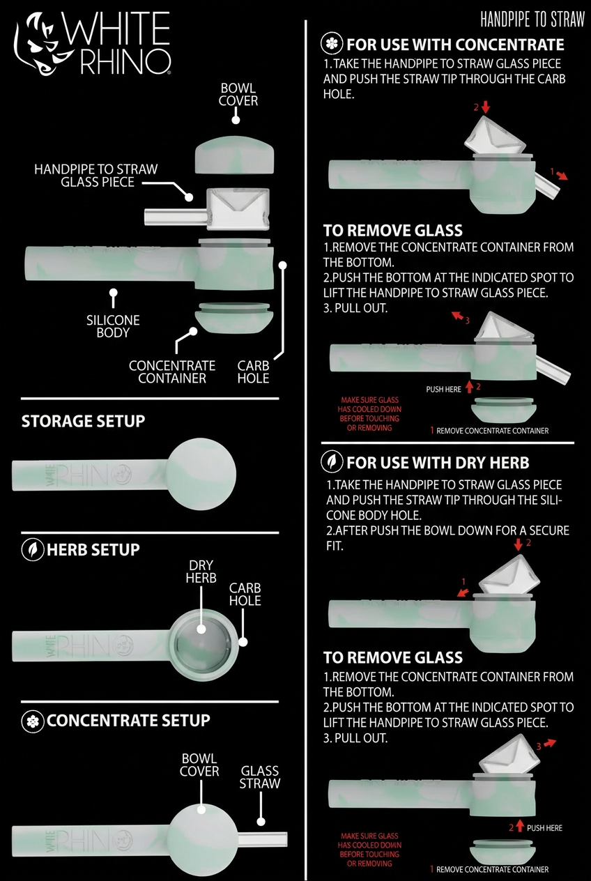 The White Rhino Multi Use offers versatile functionality with a sleek design, suitable for use with both flower and concentrates. Durable and reliable for various applications.